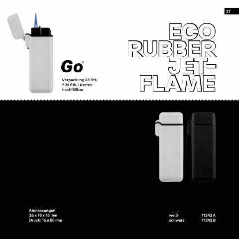 ECO RUBBER Verpackung 25 Stk. 500 Stk. / Karton nachfüllbar JET- FLAME 27 Abmessungen 26 x 75 x 15 mm weiß 71242 A Druck: 16 x 50 mm schwarz 71242 B
